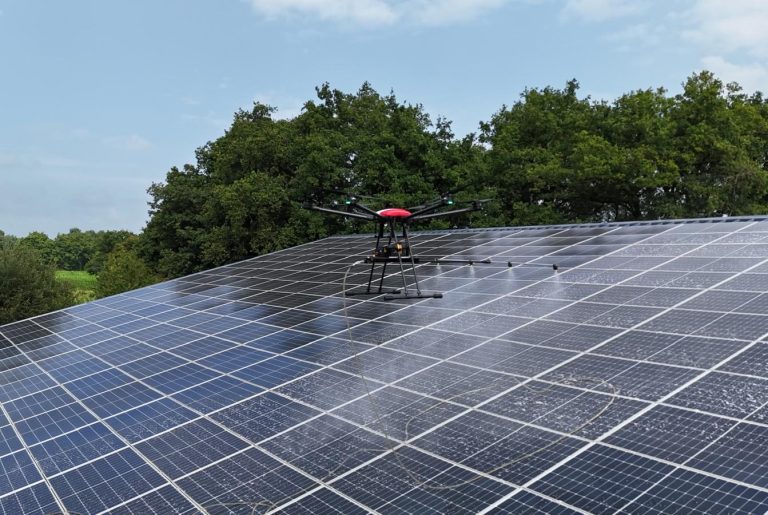 Nos drones sont équipés de systèmes de nettoyage doux (brosses, souffleurs d’air ou nettoyeurs à basse pression) permettant d’augmenter leur efficacité en éliminant les poussières, les salissures ou encore la pollution accumulée.